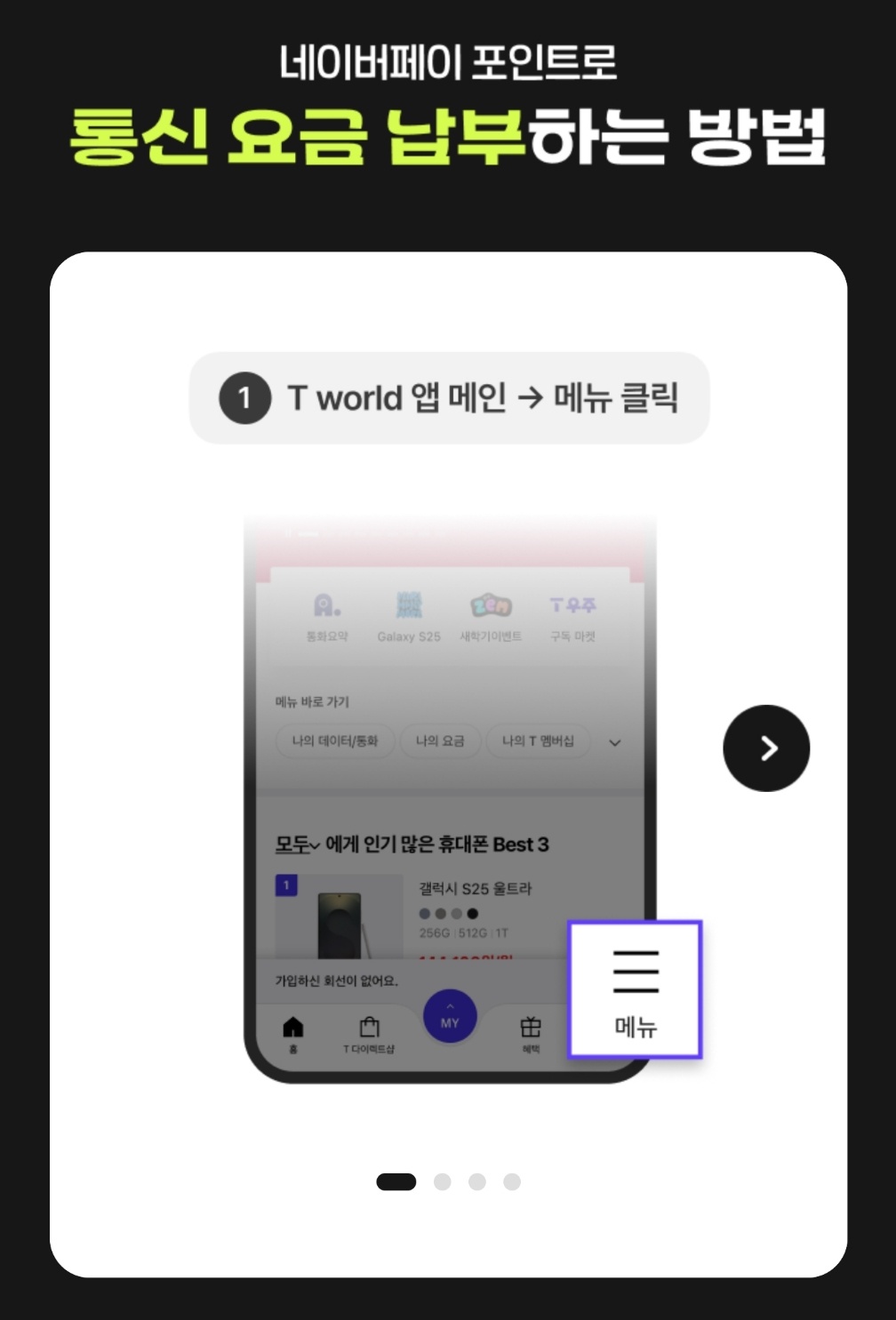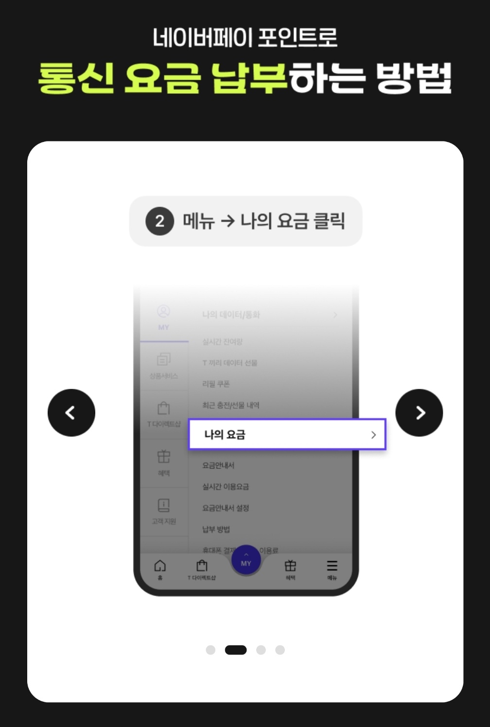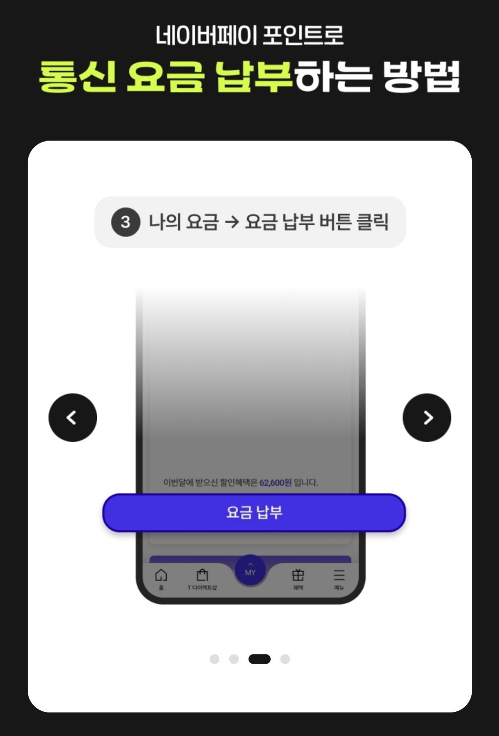 - 환급되는 네이버 페이로 SKT 요금 납부가 가능합니다.